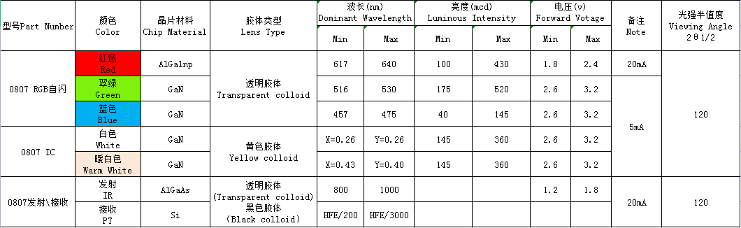 0807(單、雙、全彩、ICRGB、發射接收)全系列