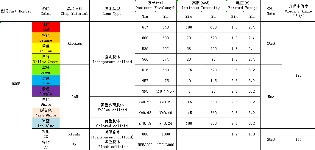 0805(單、雙、全彩、ICRGB發射接收)全系列